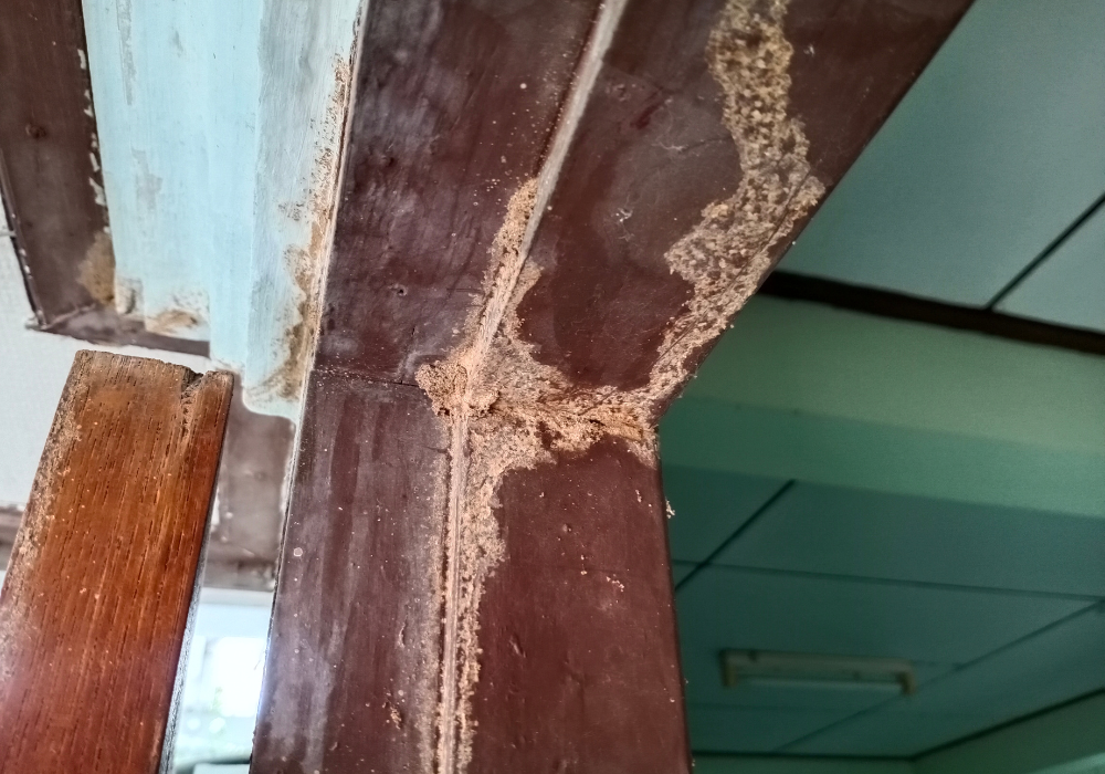 Look for signs like hollow-sounding wood, mud tubes on walls, discarded wings, or small holes in wooden surfaces.